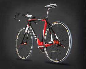 Take, for instance, the state of the art proprietary Fezzari Racing Design Xr7 3K monocoque carbon fiber frame. We used the highest grade of carbon fiber available on the market. We made it even stiffer laterally by enlarging the bottom bracket shell and adding the BB30 bottom bracket/crank design, strengthening the headtube and making it more laterally stiff by enlarging the diameter to a 1.5" tapered design. We've also enlarged the seatstays near the rear axle for more lateral rigidity. We made the Xr7 frame even more vertically compliant for those rides on the cobblestones. We've done this by using an oval design in our top tube and down tube.  The new Xr7 frame is even more aerodynamic than before with the new F4 ultralight bladed carbon fork and internal cable routing on the top tube.  The Xr7 frame was recently tested to be one of the most durable frames on the market, and it weighs a mere 900 grams. Strength, lightweight, rigidity where you need it most, and flexible enough to take the edge off of rough roads -- it's the perfect frame for anyone who wants to get the most out of their riding experience.